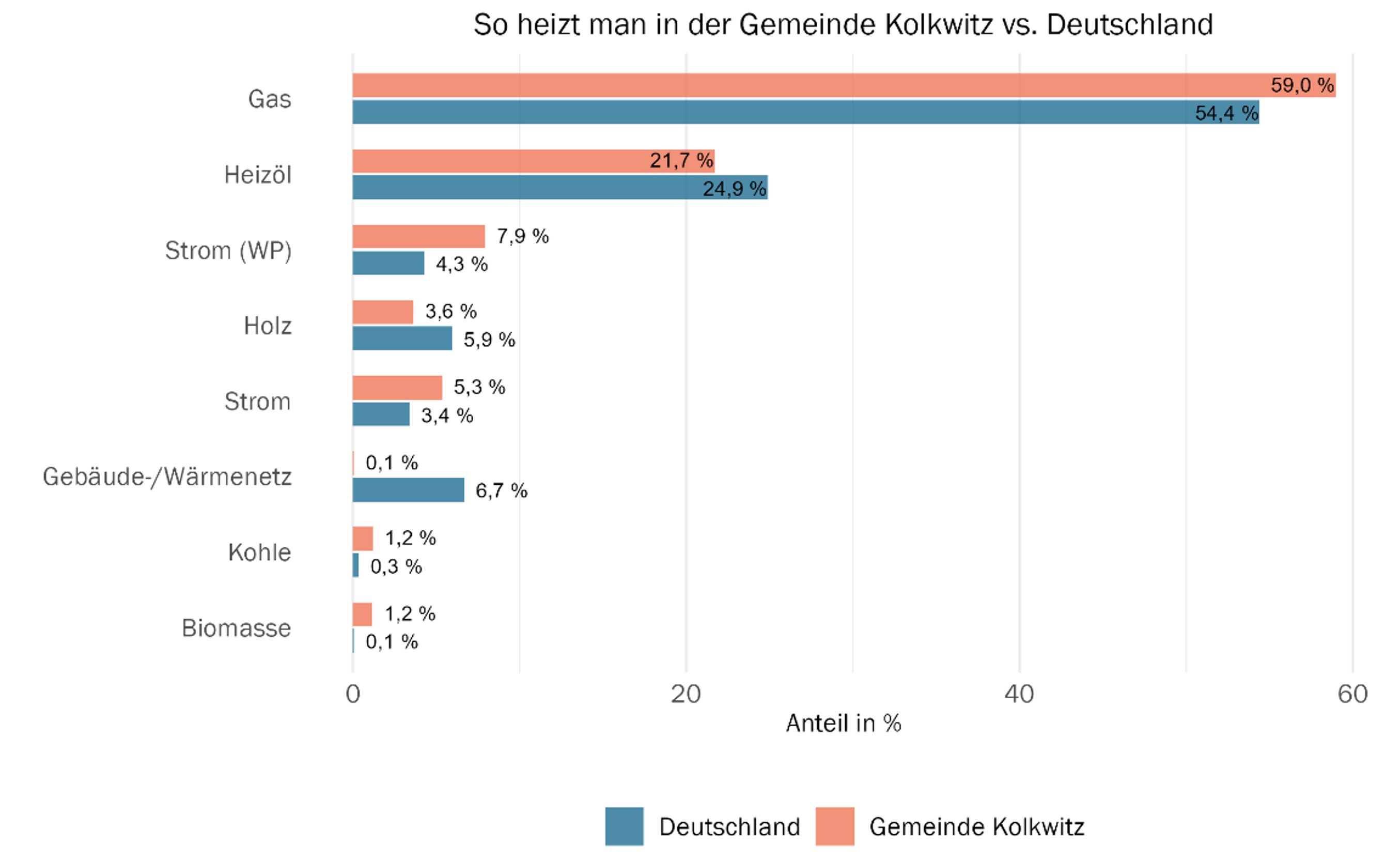 - 59 % Erdgas, 22 % Heizöl, 1 % Kohle