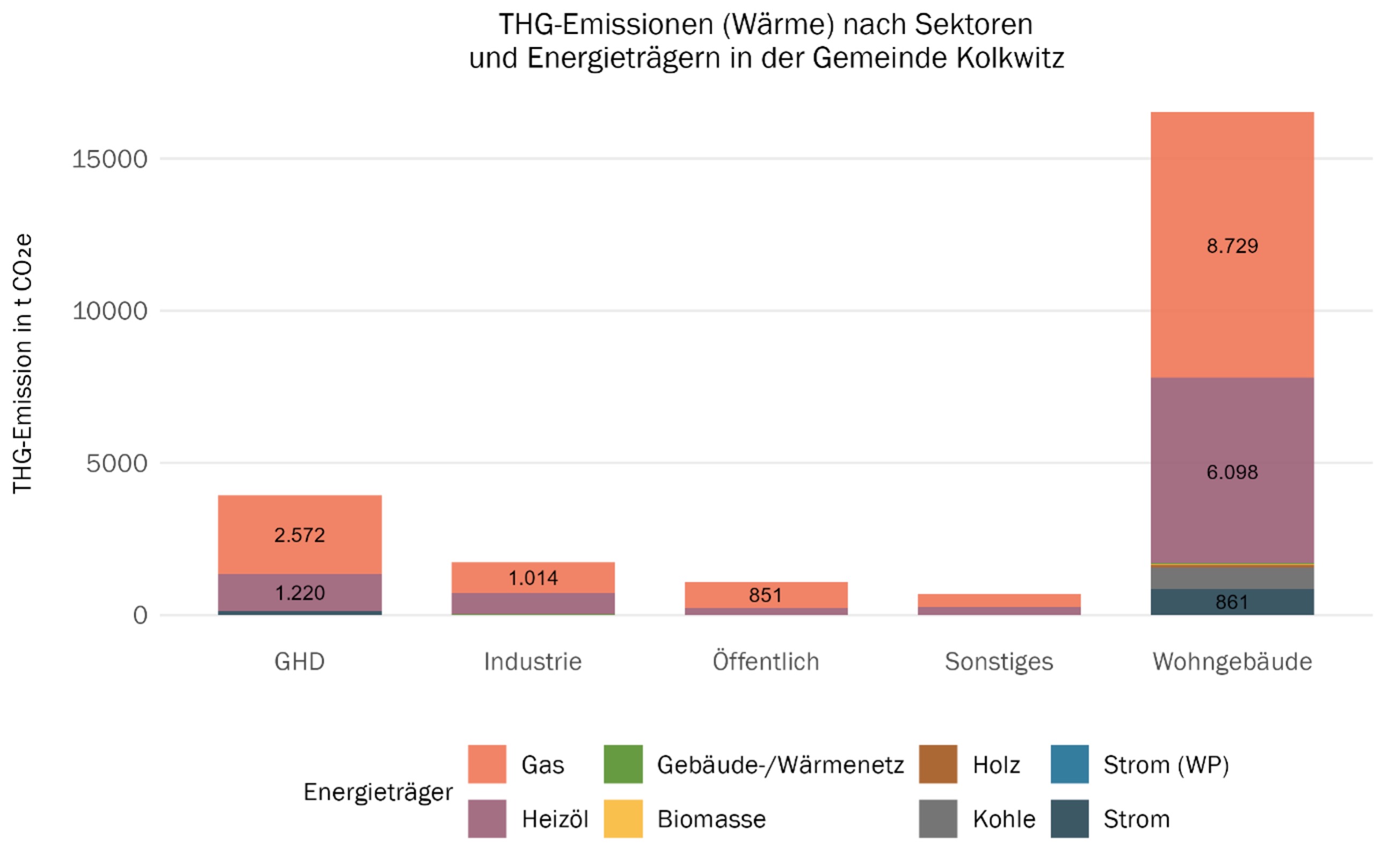 - Hauptverursacher ist der Wohnsektor (rund 69 % der Emissionen)